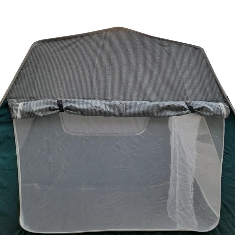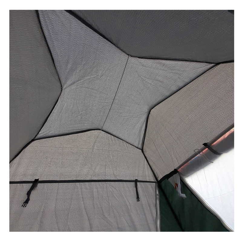 چادر اسکلتی دارای سه پنجره با پشهبند و درب ورودی مجهز به پشهبند است. کف این چادر ضخیم و مقاوم است. همچنین، کیف و کاوری با کیفیت و جادار همراه با چادر عرضه خواهد شد.