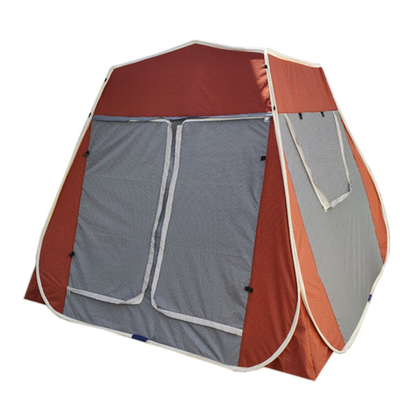 چادر مسافرتی، مناسب طبیعت گردی و کمپینگ میباشد . این محصول دارای 4 درب و دو پنجره بزرگ است . دارای 20 قلاب نگهدارنده در وپنجره و توری است . کف ضخیم است و جنس چادر ضد آب است . داخل چادر یک پارچه قرار دارد که با نصب آن می توانید محیط داخل چادر را به دو قسمت تقسیم کنید . در قسمت درب ها و پنجره ها توری حریر ریز بافت کار شده است.