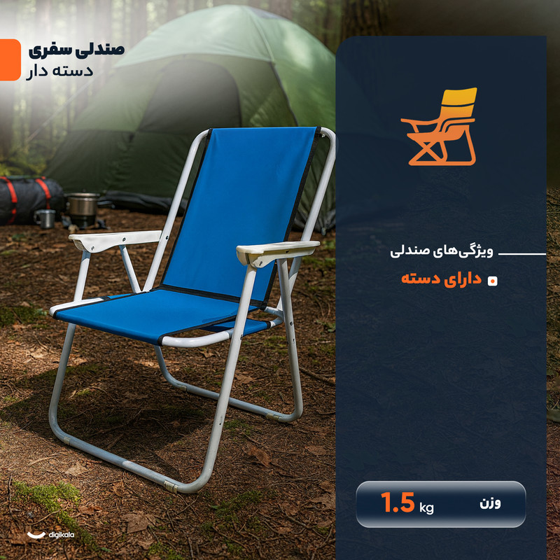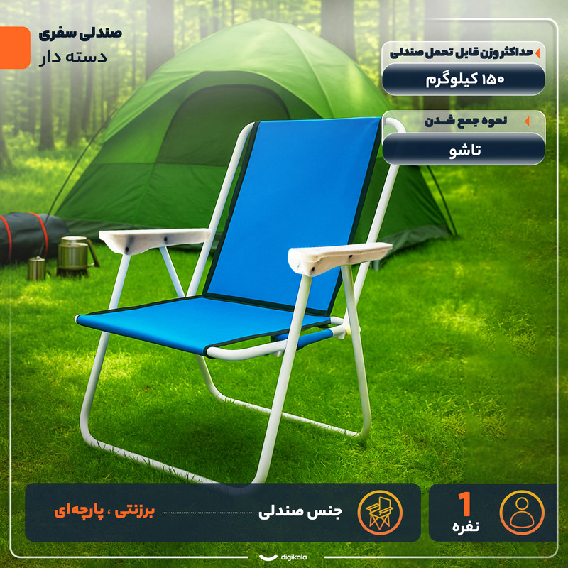 صندلی تاشو سفری مدل دسته دار ارتفاع پایه 80 سانتی متر