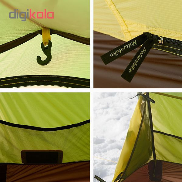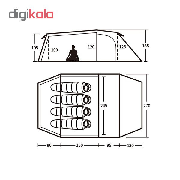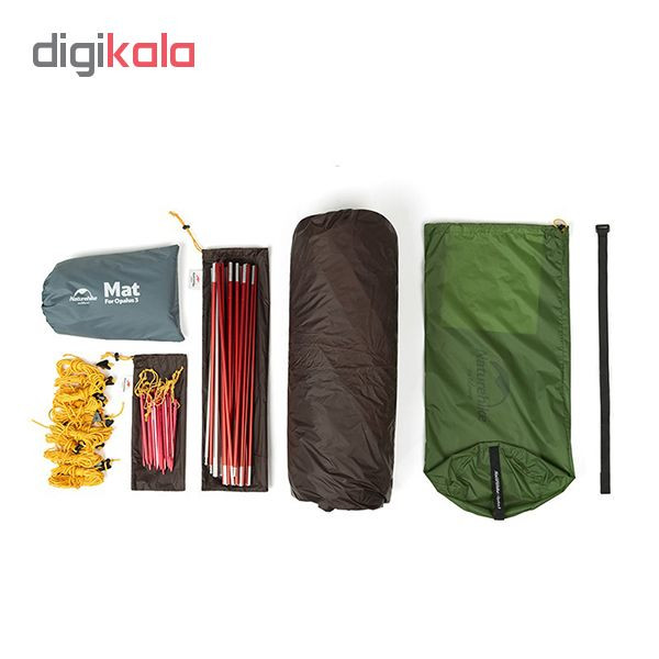 جنس کاور: پلی استر 210T و ضد آب PU3000MM مش B3 برای انتقال هوا جنس پارچه داخلی: پلی استر 210T و ضد آب PU3000MM جنس کف چادر: پلی استر 210T و ضد آب PU3000MM جنس تیرک : آلومینیوم 7001 جنس میخ ها : آلومینیوم گیره های Duraflex وزن خالص چادر: 3012 گرم
