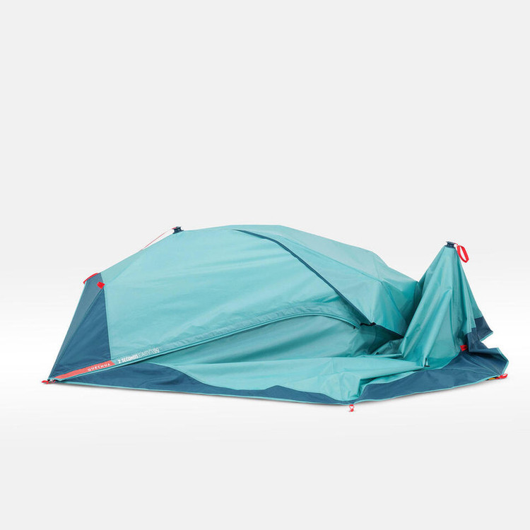 چادر کمپینگ دو نفره Quechua مدل 2Seconds، همانطور که از نامش مشخص است یک محصول فوق العاده از شرکت فرانسوی کچوآ بوده که در مدت زمان کوتاه و به تنهایی قابل نصب می باشد. متخصصان این شرکت برای راحتی و صرف وقت کمتر برای نصب چادر و لذت بردن بیشتر از کمپینگ، چادری طراحی و تولید کرده اند که علاوه بر این ویژگی از مزیت های بسیاری برخوردار است. چادر 2Seconds از نوع چادرهای فنری و دوپوش محسوب می شود. این ویژگی ها برای اکثر طبیعت گردان، کوهنوردان و کسانی که سبک سفر کرده و دوست دارند خستگی خود را با برپایی چادرهای نصب فوری برطرف کنند، اهمیت بسیاری دارد. دو پوش این چادر برخلاف چادرهای دیگر به هم متصل هستند تا هنگام نصب و یا جمع کردن آن زمان کمتری گذاشته شود. پوش اول چادر از جنس پلی استر کاتیونی و قسمت هایی نیز از تور تشکیل شده تا بتواند جریان هوا را به خوبی هدایت کند. کفی این پوش نیز از جنس پلی اتیلن بوده و در مقابل آب تا 2400 میلی متر مقاوم می باشد. از دیگر ویژگی های این پوش وجود یک بند بر روی سقف بوده تا بتوانید با اتصال چراغ روشنایی به آن در تاریکی از نور مناسبی بهره مند شوید. اما برای جلوگیری از گم شدن وسایل کوچک و یا مرتب سازی، در کناره های چادر، توری هایی طراحی شده که می توانید موبایل، کتاب، ماگ و ... را داخل آن ها قرار دهید. پوش دوم چادر 2Seconds ساخته شده از پارچه پلی استر کاتیونی بوده و در برابر آب تا 2000 میلی متر مقاوم می باشد. همچنین روکش روی پارچه به گونه ای بوده که در مقابل اشعه مضر خورشید با SPF 30 از پوست شما مراقبت می کند. یکی دیگر از خوبی های پوش دوم ایجاد فضایی بین دو پوش برای قرار دادن وسایلی مانند کفش هایتان است که از خیس شدن آن ها در زیر باران جلوگیری می کند. در ضمن با مقاومت عالی در برابر باد تا 50 کیلومتر در ساعت دیگر نگرانی از خرابی چادر خود در مقابل باد نخواهید داشت.