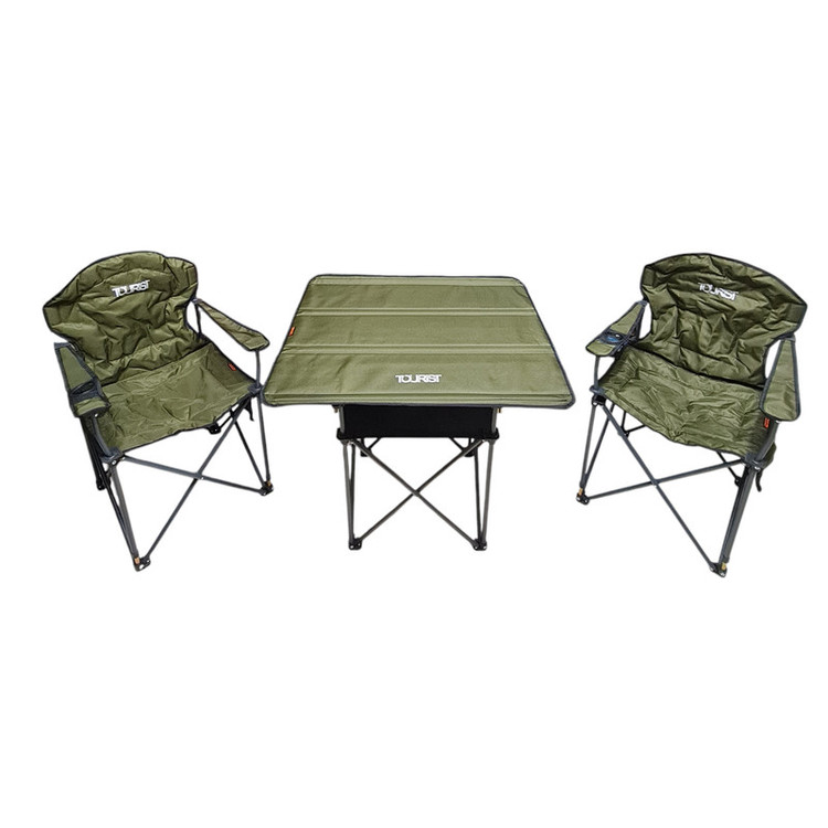 مجموعه سهتکه میز و صندلی سفری تاشو برند توریست مدل DS3 گزینهای مناسب برای استفاده در فضای باز، کمپینگ و سفرهای کوتاه است. این ست شامل یک میز و دو صندلی طراحی شده برای دو نفر است که حمل و نگهداری آسان آن به دلیل ساختار تاشو فراهم شده است. میز دارای ابعاد ۴۶×۴۶×۷۰ سانتیمتر و دو طبقه است و یک جیب جانبی برای قرار دادن وسایل ضروری روی آن تعبیه شده است. درجه 2 صفحه میز از جنس برزنت ساخته شده و استحکام کافی برای استفاده روزمره را ارائه میدهد. صندلیها ابعادی برابر با ۹۰×۵۰×۶۳ سانتیمتر دارند و فریم فلزی آنها با روکش برزنت پوشانده شده است. این طراحی باعث مقاومت در برابر وزن تا ۱۲۰ کیلوگرم برای هر صندلی شده است و سطح نشیمن راحتی را فراهم میکند. نصب ست بهصورت دستی انجام شده و جمع شدن آن بدون ابزار امکانپذیر است. جای دست و جای لیوان روی صندلیها استفاده از آنها را در طول استراحت یا وعدههای غذایی در طبیعت آسان میکند. وزن کل مجموعه ۱۱٫۲ کیلوگرم است و به راحتی در صندوق خودرو یا کولهپشتی بزرگ حمل میشود. با این مجموعه، کاربران میتوانند فضای استراحت منظم و کارآمد در محیطهای باز داشته باشند و از دوام و پایداری تجهیزات اطمینان حاصل کنند، در حالی که کاربرد و طراحی تاشو آن، حمل و نگهداری را به شکل ساده و عملی امکانپذیر میکند.