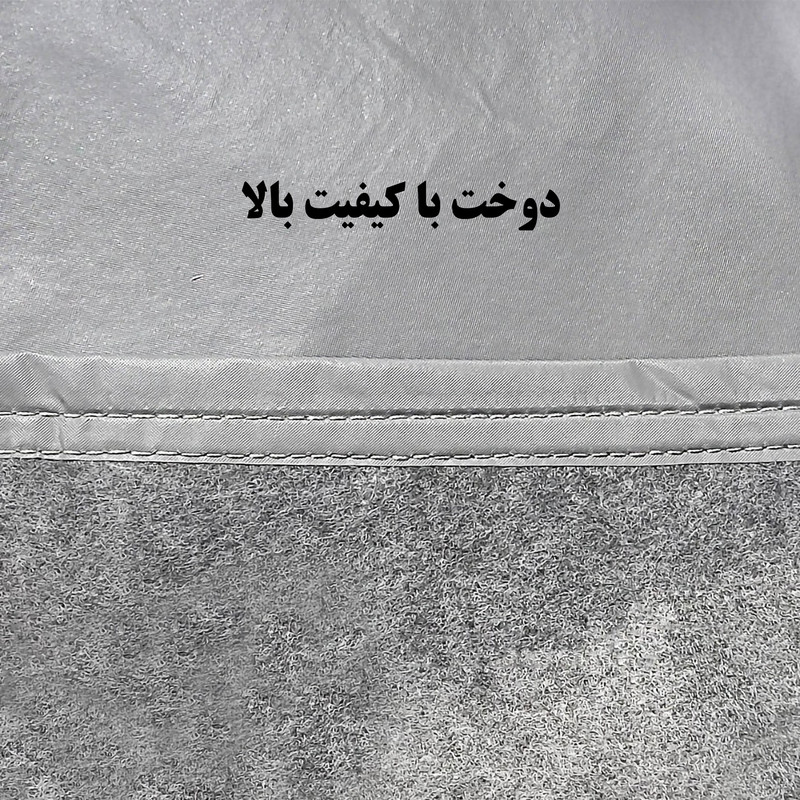 دارای کش در بخش سپر جلو و عقب دارای زیپ سمت در راننده دارای جا آینه ای