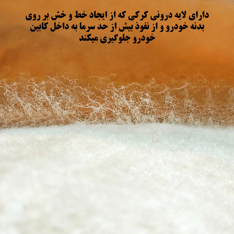 دارای کش در بخش سپر جلو و عقب دارای زیپ سمت در راننده دارای جا آینه ای