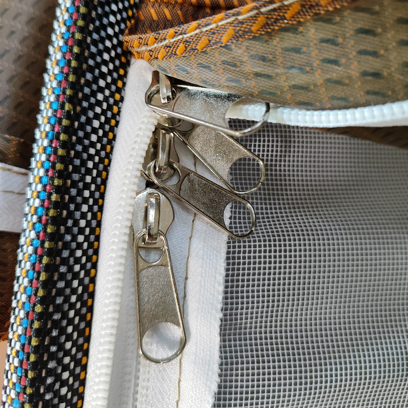 در بخش ورودی و پنجرهها، سرزیپهای فلزی دوطرفه به همراه توری حریر پشهبند تعبیه شده که هم تهویهی مناسب هوا را تضمین میکند و هم مانع ورود حشرات میشود. فنرهای باکیفیت این چادر مقاومت بالایی در برابر باد دارند و با وجود 8 عدد طوفاگیر در اطراف، میتوان آن را بهصورت ایمن به زمین متصل کرد تا در شرایط طوفانی نیز پایدار بماند.
