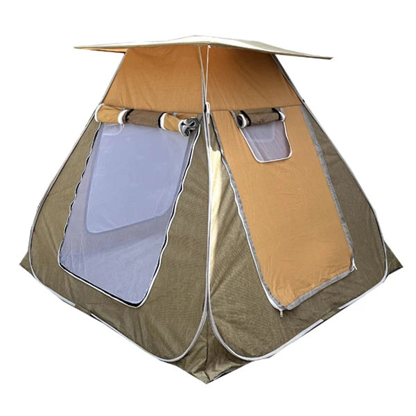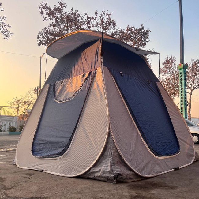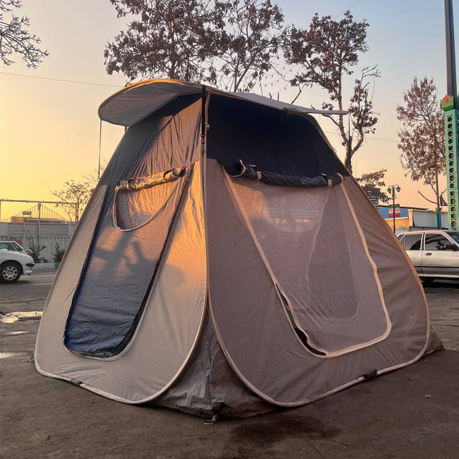 چادر مسافرتی 360 درجه ، تولید شده از جنس برنو ضدآب هست. این محصول دارای چهار درب بزرگ توری دار هست ، که همین باعث میشود شما به عنوان پشه بند هم بتونید از این محصول استفاده کنید. تمام توری ها توسط زیپ باز و بست می شوند. زیپ های درب دو سر زیپ هست و هم از داخل هم از بیرون قابل استفاده هست. روی درب ها چهار پنجره کوچک هم طراحی شده. در قسمت سقف هم یک پنجره توری دار کار شده است. دوخت چادر دولایه هست یعنی پارچه تا شده و از رو دوخت رفته که همین در مقابل رطوبت نفوذناپذیرش میکند. این چادر داری کیف ست و همچنین سایبان ست هم جنس و همرنگ می باشد. ابعاد چادر 250x250 و ارتفاع 210 می باشد مناسب نشستن 8-10 نفر و برای خواب 4-5 نفر می باشد.