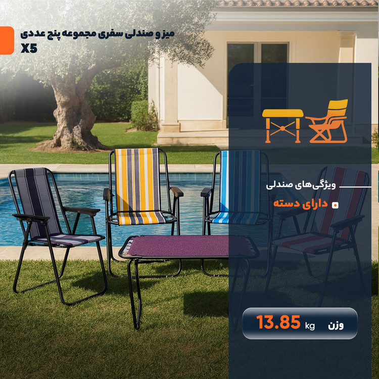 میز و صندلی سفری تاشو 4 نفره مدل xp555 مجموعه 5 عددی